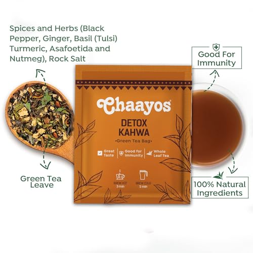 Chaayos Detox Green Tea - Desi Kahwa (25 Tea Bags) | Green Tea Bags | Desi Kahwa Green Tea | Green Tea For Digestion
