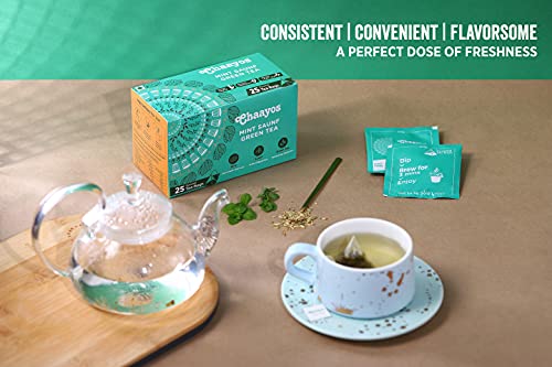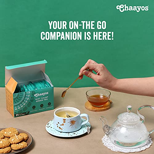 Chaayos Green Tea Bags - Mint Saunf (50 Pyramid Tea Bags) | Spearmint Tea and Fennel Flavoured Green Tea | Mint Green Tea | Herbal Tea | Green Tea Leaves