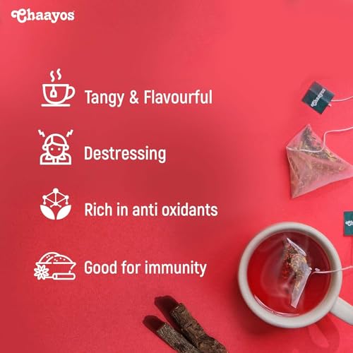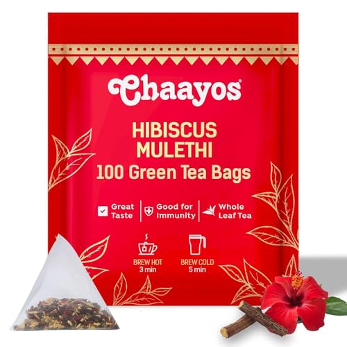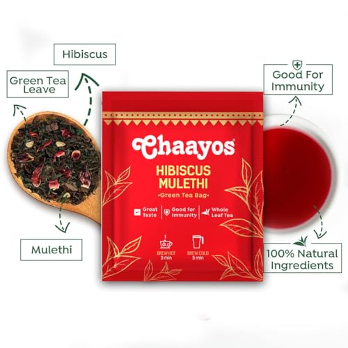 Chaayos Hibiscus Mulethi Green Tea - 25 Hibiscus Green Tea Bags | Hibiscus Flowers with Green Tea Leaves | Whole Leaf Tea | Green Tea | Detox Tea | Pyramid Tea Bags