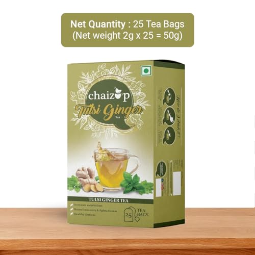 About this item TEA BENEFITS : Builds a stronger immunity alleviates stress improves memory calms an anxious mind helps to get better sleep keeps sugar in control aids digestion keeps a healthy heart aids in weight loss natural body detox and makes skin glow Ginger is known for managing symptoms associated with indigestion like bloating abdominal distension & flatulence. Tulsi helps in boosting immunity and reduces stress levels Daily consumption of this Ginger Tulsi tea helps in managing respiratory ailments like common cold & cough nasal and throat irritation.