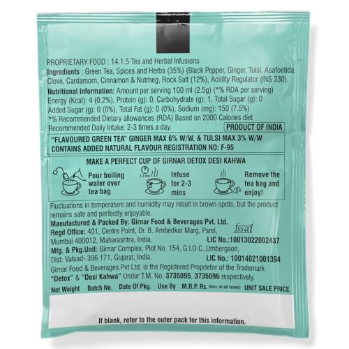 Green Tea Black Pepper Ginger Tulsi Asafoetida Clove Cardamom Cinnamon Nutmeg Rock Salt Citric Acid.