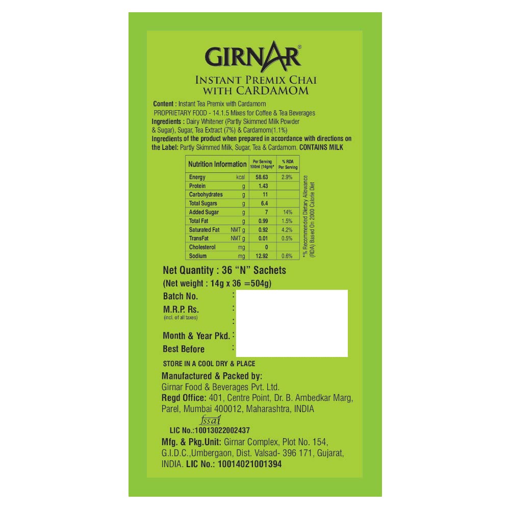 Indians boast of Chai thanks to the Queen of England; Indians boast of Cardamom Chai thanks to the Queen of Spices. From the Queen of England to the Queen of Spices (Cardamom/Elaichi) Indian Chai has been through a long journey. But you know the journey has been worthwhile when the outcome is Cardamom Chai. A Premix of Strong chai with a delicate but refreshing Cardamom flavour Girnar’s Cardamom (Elachi) Chai is a royal blend that appeases your nose buds and your taste buds.