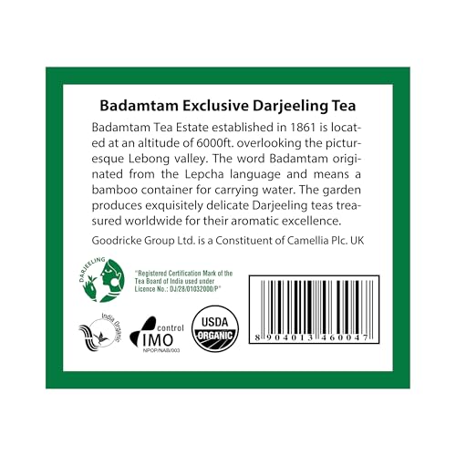 GOODRICKE Badamtam Darjeeling Tea is a 250 gm package of premium whole leaf premium black tea.