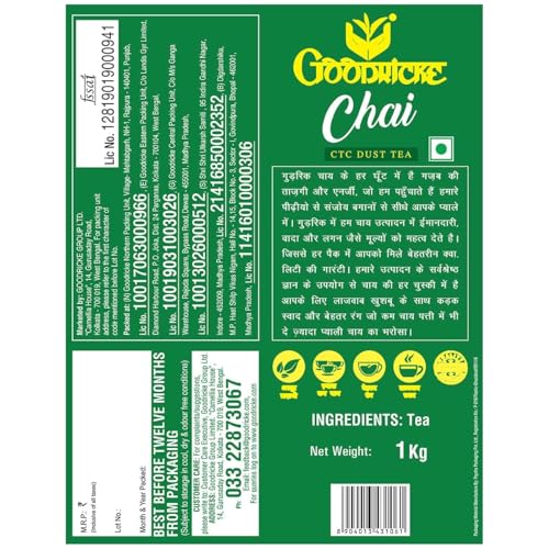 Goodricke Chai is a wonderful blend of CTC tea dust roasted to perfection for the perfect Indian tea. Freshly picked Assam tea leaves are processed to perfection in state of the art hygienic mills. The freshness of the roast is sealed at the right moment - so when you open the pack all you find is goodness.