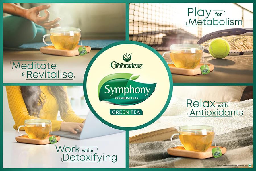 Picked from quaint foothills of the Himalayas Goodricke Symphony Green Tea is testimony to an active lifestyle. Naturally rich in goodness this soulful cup of green tea helps you enjoy life's little moments with its perfect combination of benefits and taste. With years of experience in tea making Goodricke promises a perfect symphony of mind body and soul in every sip.