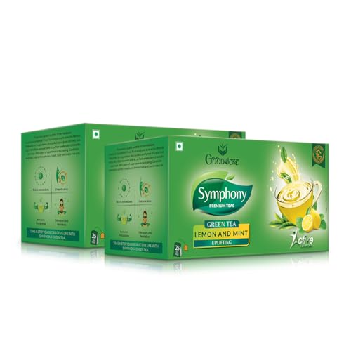 Goodricke Symphony Green Tea - 25 Tea Bags (Pack of 2) | Lemon & Mint Flavour | Pure & Natural Detoxifying & Boost Immunity | Premium green tea loose leaf | Increases Metabolism