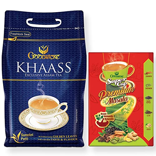 Goodricke Khaass truly lives up to its name. Gently hand-picked from select tea bushes and specially rolled to perfection this exclusive blend contains exquisite long Golden leaves (Sunehri Patti) which lend a unique and rare flavor with every cup. This coupled with Goodricke's 140 years of tea-making expertise makes Khaass a blend which outshines all others. Premium Chai Discover the real goodness of 100% natural spices in each sip of Super Cup Premium Masala Tea. The very spices known for their immunity boosting benefits in Ayurveda since centuries now come together in your cup of tea. So get ready to experience cardamom clove black pepper cinnamon and ginger in one blend for strong taste and rich flavor.