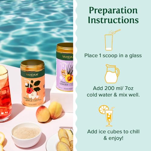 Hibiscus Apple Iced Tea Instant Premix (150 g) 60 Servings | Lightly Sweetened Iced Tea | Tarty Hibiscus & Sweet Apple | Best for Mocktails & Cocktails | Packed in Tin Caddy | VAHDAM