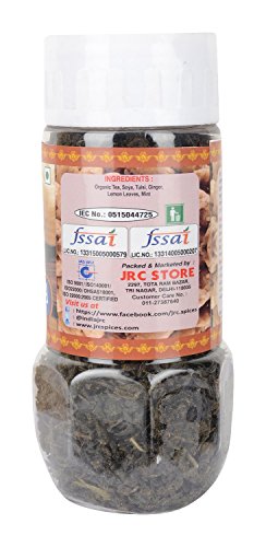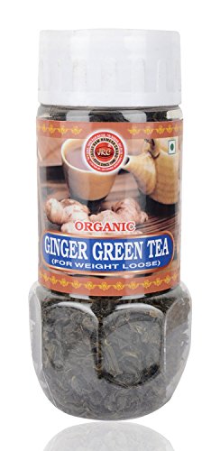 This is a bottle of organic ginger green tea which weighs around 50 grams. It is made of organic tea soya tulsi ginger lemon leaves & mint. It has a shelf life of 12 months. It is recommended to be stored in a cool and dry place.