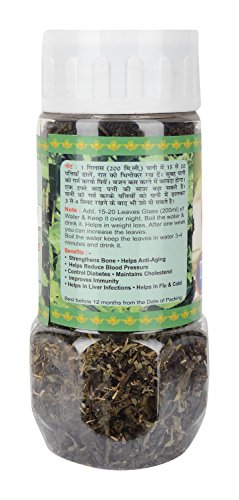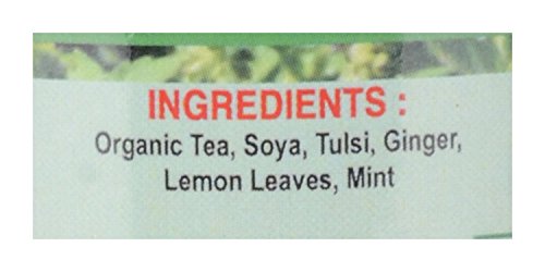 This is a bottle of tulsi green tea which weighs around 100 grams. It is made of organic tea soya tulsi ginger lemon leaves & mint. It has a shelf life of 12 months. It is recommended to be stored in a cool and dry place.