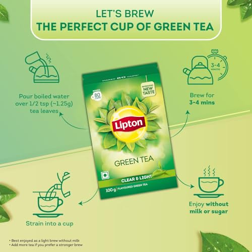 It not just a cup of tea its therapy - One Sip at a Time. Wake up to a morning cup of hot Lipton green tea and feel how it leaves you feeling light and active. Choose Lipton Green Tea Clear & Light as your go-to beverage during the day. Green tea is produced when freshly plucked leaves are heated rolled/cut and then dried. The catechins in the fresh leaves are preserved during the green tea process and these catechins helps reduce waist. Also green tea is typically drunk without milk and sugar and hence gives zero calories as compared to the ordinary chai made with milk and sugar. Staying hydrated is essential to ensure bodily functions are carried out efficiently - Lipton Green Tea being 99.5% water is a great way to meet your daily required fluid intake. Lipton offers a range of different flavours to ensure that you are offered variety and enjoyment while drinking tea. Lipton flavours some of its teas with added natural flavours and no artificial flavours are used. You may try Lipton Green tea in Clear & Light Tulsi Natura Honey & Lemon and Lemon Zest flavours as well available in pack sizes of 25s 50s and 100s Tea bags.