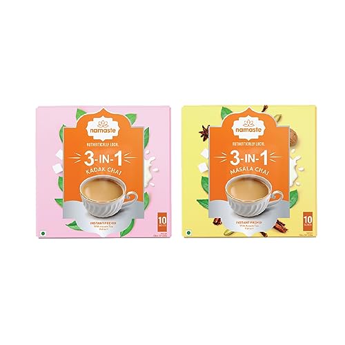 Namaste Chai Instant Tea Premix Kadak and Masala Chai Readymade Tea Powder Sachets Combo Pack 20 Sachets (22g x 20 SachetsPowder)