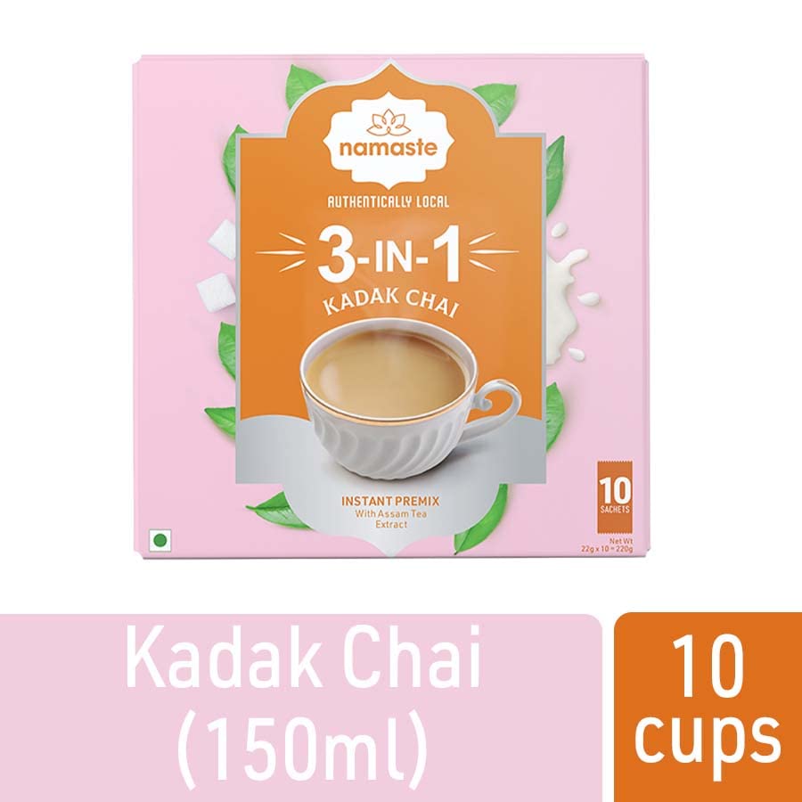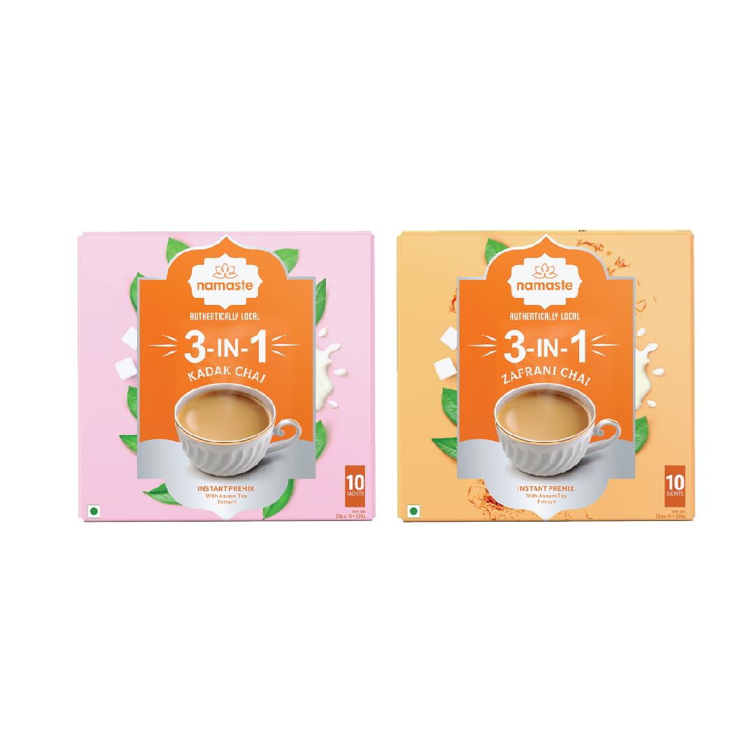 Namaste Chai Instant Tea Premix Kadak Chai And Saffron Readymade Tea Powder Sachets Combo Pack 20 Sachets (22g x 20 SachetsPowder)