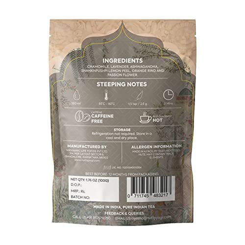 Nutty Yogi 100% Natural Chamomile Green Tea for Good Sleep & Relaxation |Herbal Tea Blend of Chamomile Lavender Ashwagandha Lemon Balm Orange Rind Shankhpushpi - 50 gm