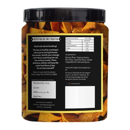 Nutty Yogi Gluten Free Masala Quinoa Chips Healthy Snack for Tea Time Kids High in Protein Good for Diet Good for Kids Healthy Alternative to Potato Chips 100Gm (Pack of 2)