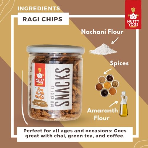 Nutty Yogi Vegan Jalapeno Ragi Crispies Chips | Low Fat & Calcium Rich Healthy Snacks for Tea Coffee | Healthy Snacks | Salty | Crunchy 100 gram (Pack of 2)