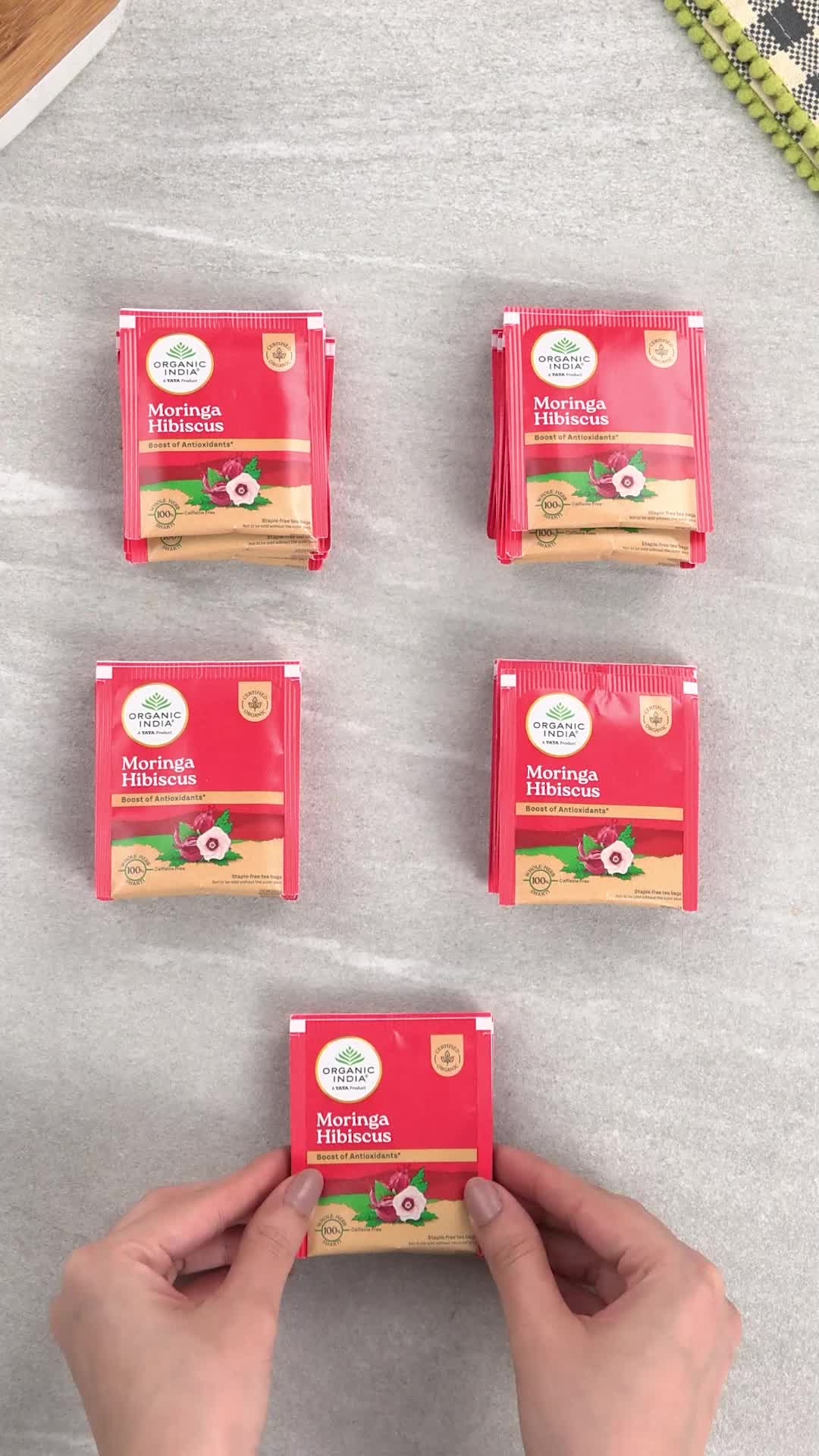 Moringa Hibiscus: Boost of Antioxidants Hibiscus combines and complements Moringa to add natural Vitamin C and natural iron to Moringa's exceptional nutritional qualities and health benefits. This delicious blend is ideal for your wholesome health and wellness. The Miracles of Moringa: Moringa is an extraordinary herb and food source which has been proven to benefit communities in India and Africa. In Ayurvedic texts Moringa is called âsigruâ meaning âmoves like an arrowâ alluding to the herb's penetrative properties. Moringa is naturally abundant with nutrition rich in essential amino acids which are the building blocks of proteins and numerous other health benefits. The Wonders of Hibiscus: Hibiscus petals naturally rich in Vitamin C and iron provide a purifying and healing energy. Hibiscus has a sweet and astringent taste or rasa and a cooling virya or energetic effect on the body. Ayurveda also uses the bright healing qualities of Hibiscus flowers to support the heart and circulatory system recognizing their ability to purify the blood promote a clear glowing complexion and uplift the heart (both physically and spiritually). For maximum health benefits drink 3-4 cups daily recommended without milk. Double the strength when serving iced.