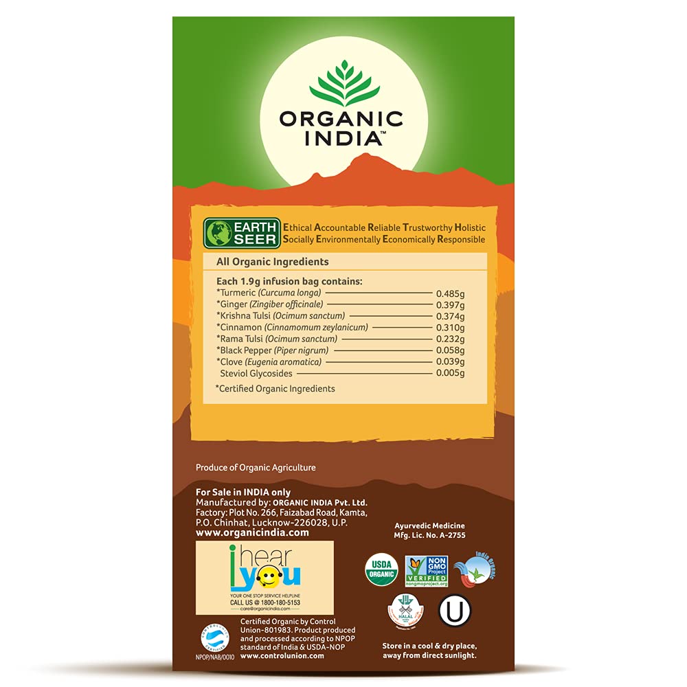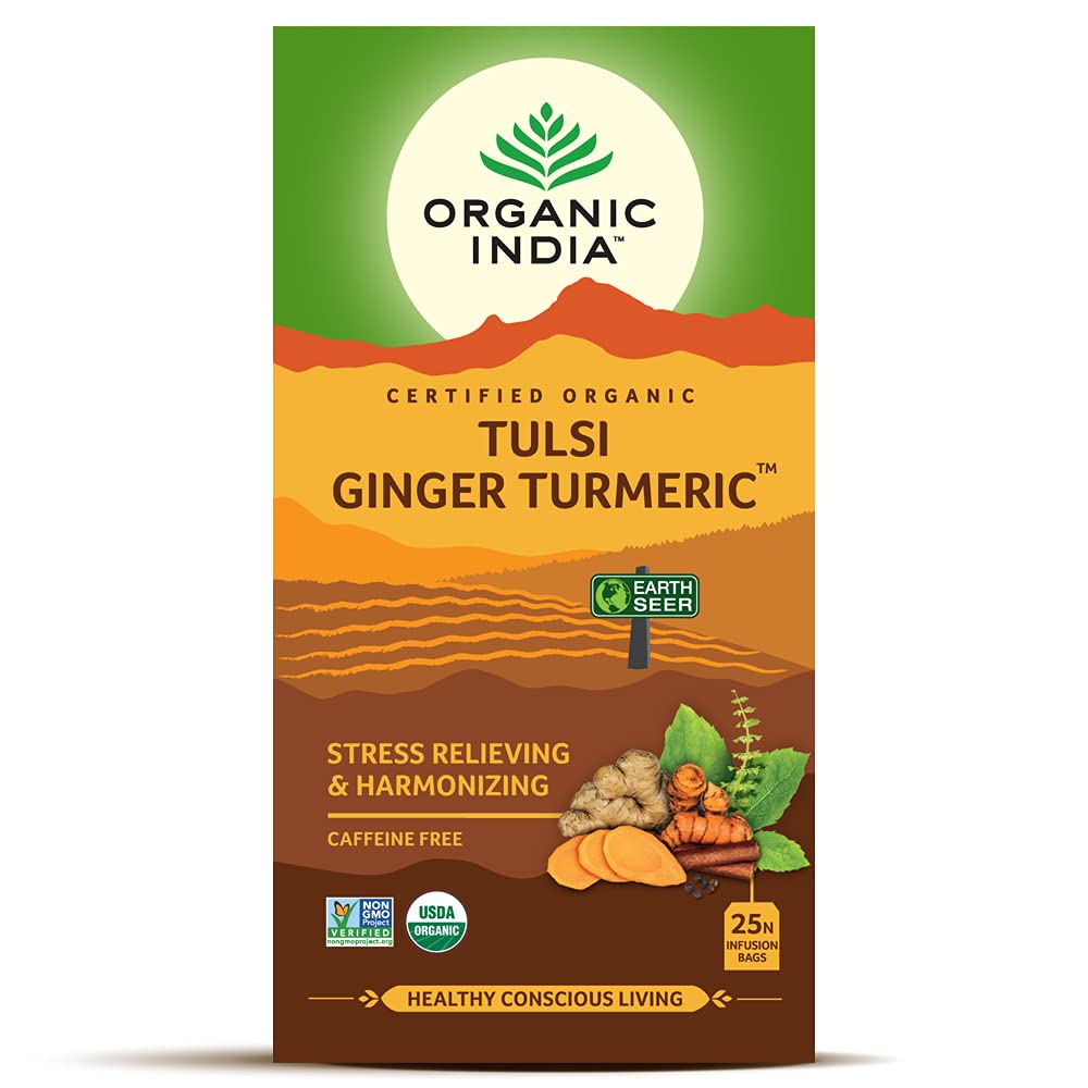 Organic India Tulsi Ginger Turmeric 25 Tea Bags Pack of 6