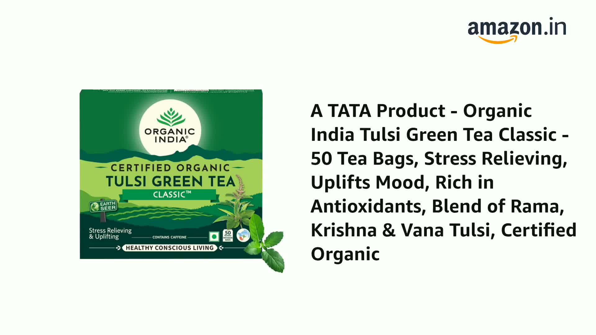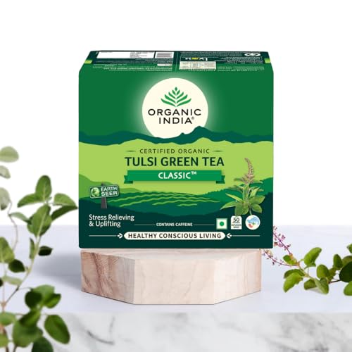 Tulsi Green Tea Classic 50 Tea Bag - Stress Relieving & Refreshing ORGANIC INDIA Tulsi Green Tea contains natural herbs good for healthClinical studies show that both Tulsi & Green Tea promote healthy metabolism which is vital to weight managementBoth offer a vast array of remarkable health benefits including an abundance of antioxidants which eliminate damaging free radicals in the bodyOur amazing combination refreshes and tastes wonderfulDrink up and enjoy.