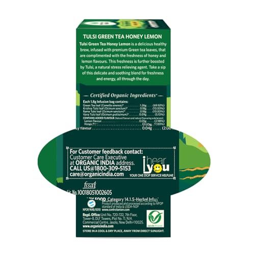 Tulsi Green Tea Honey Lemon is a delicious brew infused with premium green tea leaves that are complimented by the freshness of honey and lemon flavors and further boosted by Tulsi a natural stress relieving agentTake a sip of this delicate and soothing blend for freshness and energy all through the day.