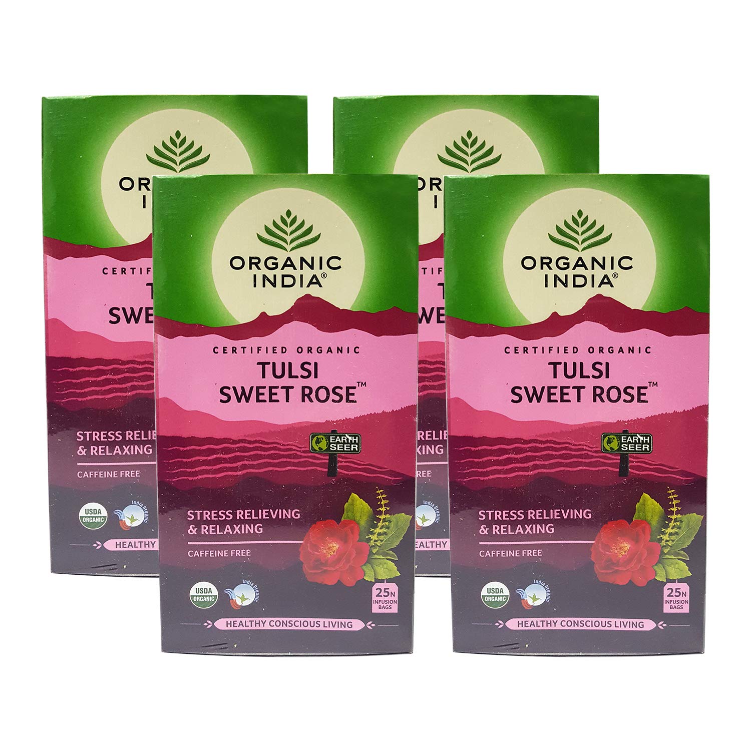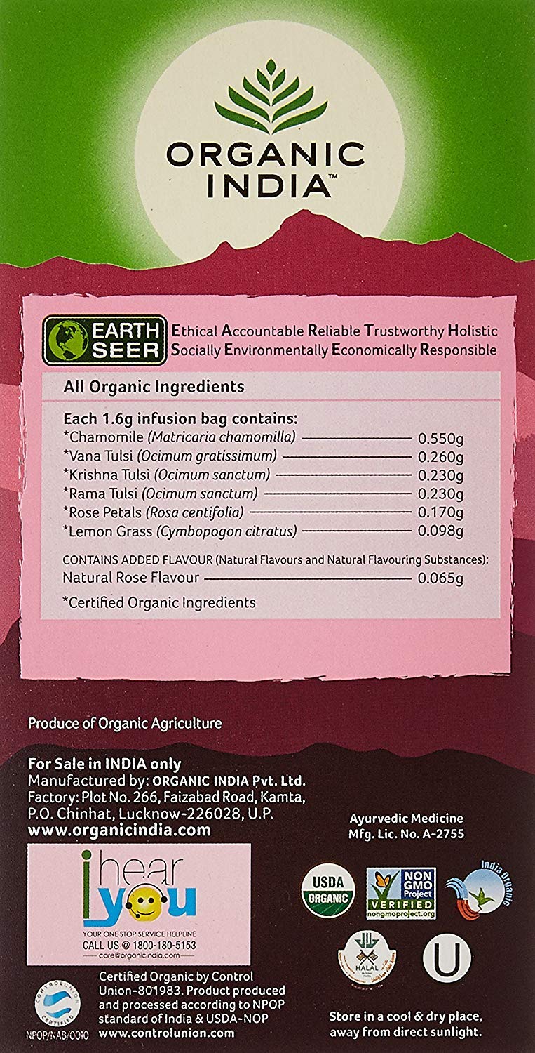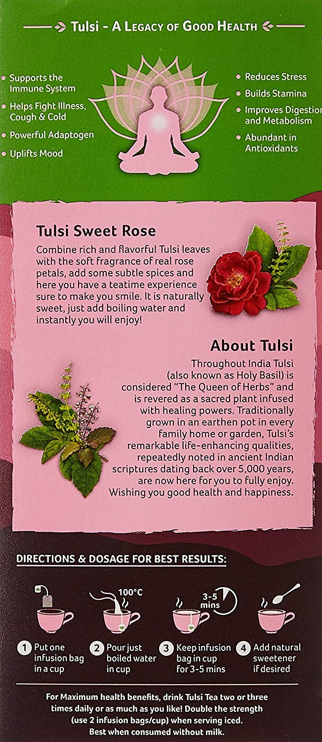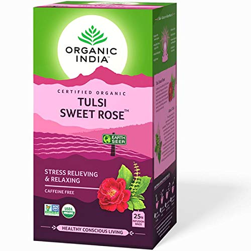 Organic India Tulsi Sweet Rose 25 Tea Bags- (Pack of 4)