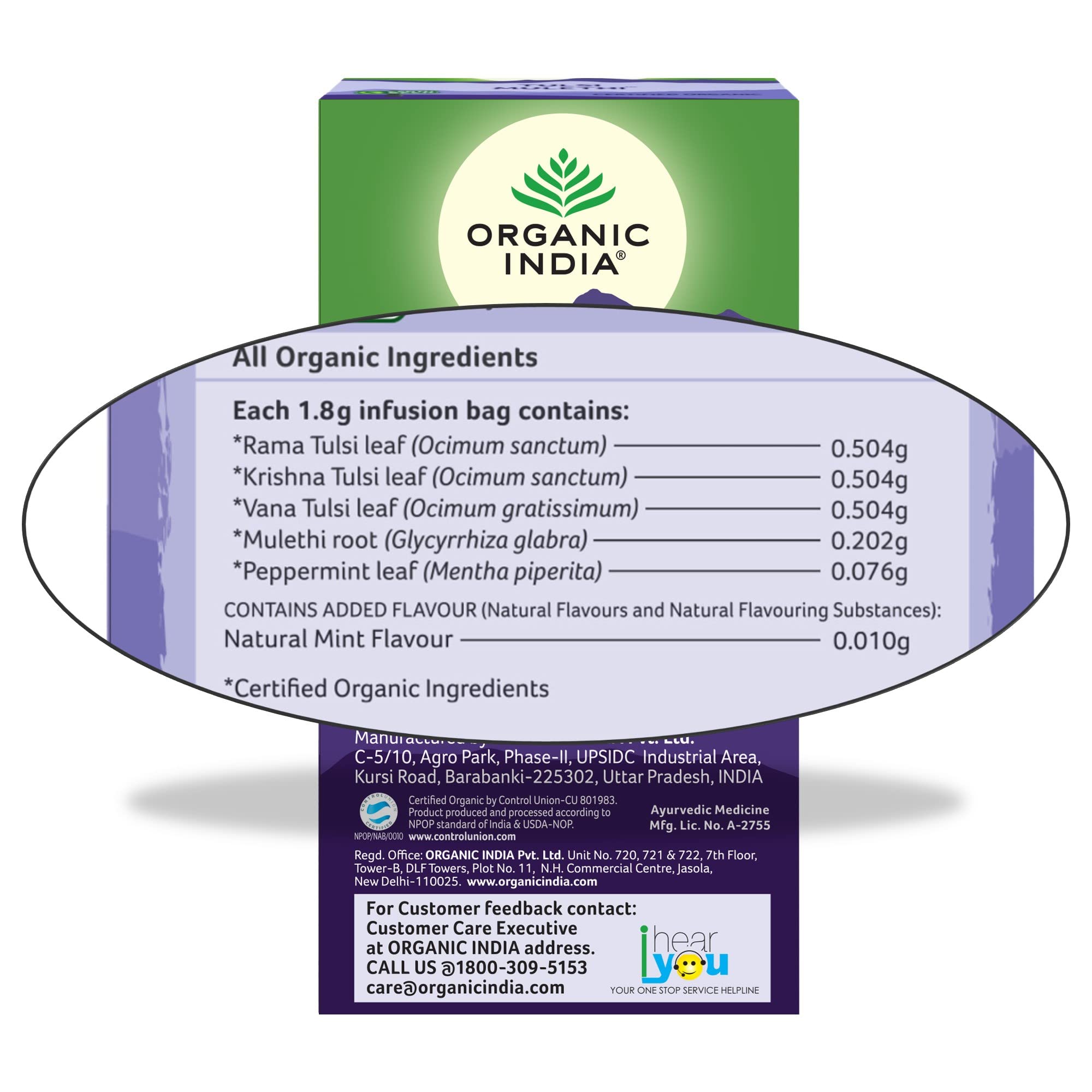 TULSI MULETHI A delicious blend of Tulsi Mint & Mulethi 100% Certified Organic Relax and enjoy a fragrant soothing cup of Tulsi MulethiDelicious Tulsi leaves blended with sweet Mulethi and a touch of tasty peppermint makes your teatime a pure pleasure something you will look forward to again and again!