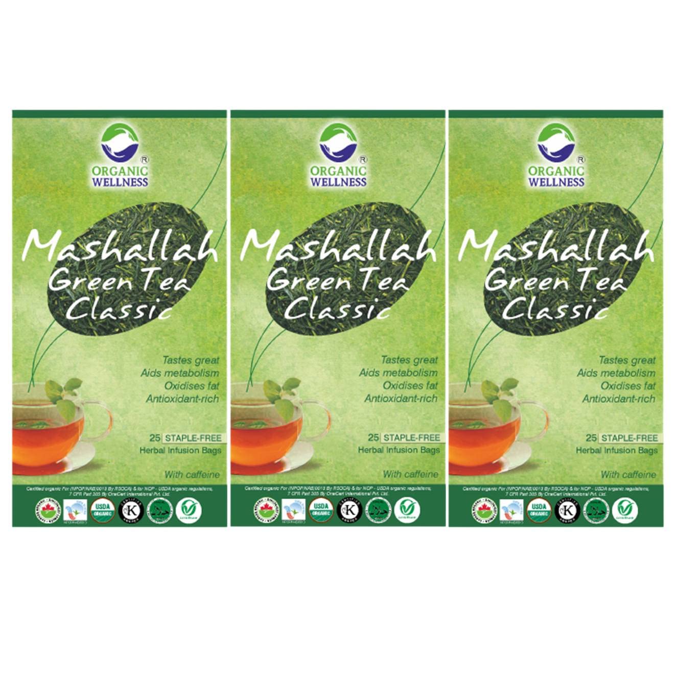 Ow real mashallah green tea classic is a superlative blend of tulsi and exotic green tea. Tulsi is a great stress reliever and boosts the immune system. Rich in antioxidants it helps eliminate toxins from the body that cause free-radical damage to cells. Green tea helps increase the metabolic rate aids fat oxidation inhibits fat absorption and intensifies the rate at which the body burns calories.