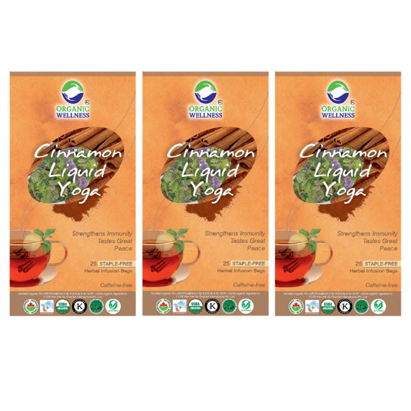 Ow'real cinnamon liquid yoga is an amazing blend using India's rich heritage of over 5000 years. Cinnamon is a potent anti-oxidant with anti-inflammatory compounds that help relieve pain and stiffness in muscles and joints. Cinnamon may boost brain function helps with weight loss and sugar control. Tulsi is a stress reliever and strengthens the immunity system. Chamomile fights anxiety and depression. Peppermint adds freshness to the blend.