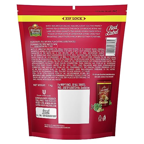 Brooke Bond Red Label is one of India's largest selling packaged tea brands. Brooke Bond Red Label Tea is a blend CTC tea with best quality leaves; processed in the unique Brooke Bond Tea Excellence Centre .Since 1869|| Brooke Bond has brought you the perfect tasting tea experience with the best-chosen leaves. It was in 1903 that Brooke Bond launched âRed Labelâ. That is when Brooke Bond Red Label started worked to create India's one of most favourite beverage âchaiâ. Every cup of Red Label is brewed with the best-chosen tea leaves; that ensure your tea has strength|| rich colour|| and refreshing taste. We believe our tea has the taste of togetherness that gives that perfect taste|| colour and irresistible aroma. Red Label is all about coming together over a warm cup of tea with everyone arounds. It is the âSwad Apnepan ka (Taste of Togetherness). Brooke Bond Red Label stands for inclusiveness and making world a better place one cup at a time.. Enjoy the great tasting range from Red Label Core and Red Label Natural Care; that has a mix of 5 Ayurvedic ingredients namely Tulsi|| Ashwagandha|| Mulethi|| Ginger and Cardamom. Red Label Natural Care is clinically proven to enhance immunity and help you fall ill less often.*OLD