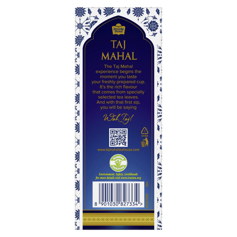 Over 50 Glorious years of Excellence When the history of tea is written down 1966 will be a celebrated chapter . For in that year Brooke Bond Taj Mahal Tea was born with a promise - To foster excellence in each tea cup. Fifty years on we have not forgotten that promise. As an age old brand we have built credential of Great Tasting tea by focusing on our consistently superior quality. Every Taj Mahal cup is created by tea tasters who approve the blend by tasting 1000s of teas then graded and blended to perfection. The brew is golden-orange in colour has a rich taste and an uplifting aroma. The Taj mahal experience begins the moment you taste your freshly prepared tea cup. Enjoy your time in solitude relax reflect and Indulge by savouring the flavour of this historic blend and feel the aroma engulf you when you bring the tea cup close and with that first sip you will be saying WAH TAJ !Taj Mahal tea true to its promise of serving great tasting teas has a range of premium handcrafted teas like black tea green tea white tea and Gourmet milk tea (masala chai). Taj mahal Gourmet tea has elaborate take on tea (Chai) concoctions with each flavour in the collection handcrafted by infusing exotic Indian ingredients with tea leaves. Some of these speciality teas are Royal Saffron Bold Spice Darjeeling 2nd flush teas.