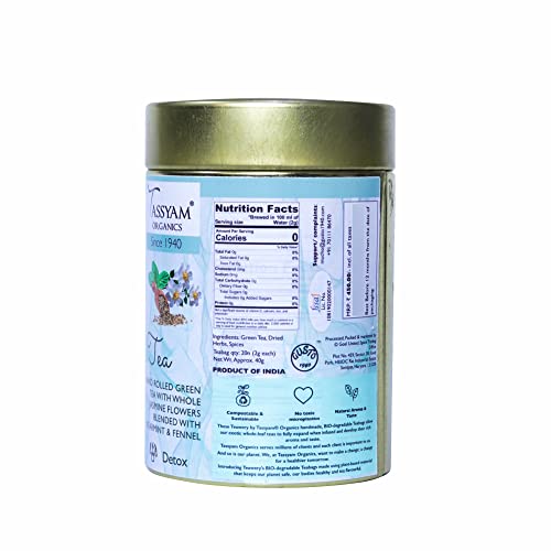 No more regretting having heavy and delish meals because Tassyam's After-Meal Tea is going to work magic. With ingredients like spearmint fennel and jasmine flower infused in Darjeeling green tea there won't be a better way to end your meals. 100% biodegradable tea bags made with plant based fabric which is healthier for the body as well as safe for the environment.