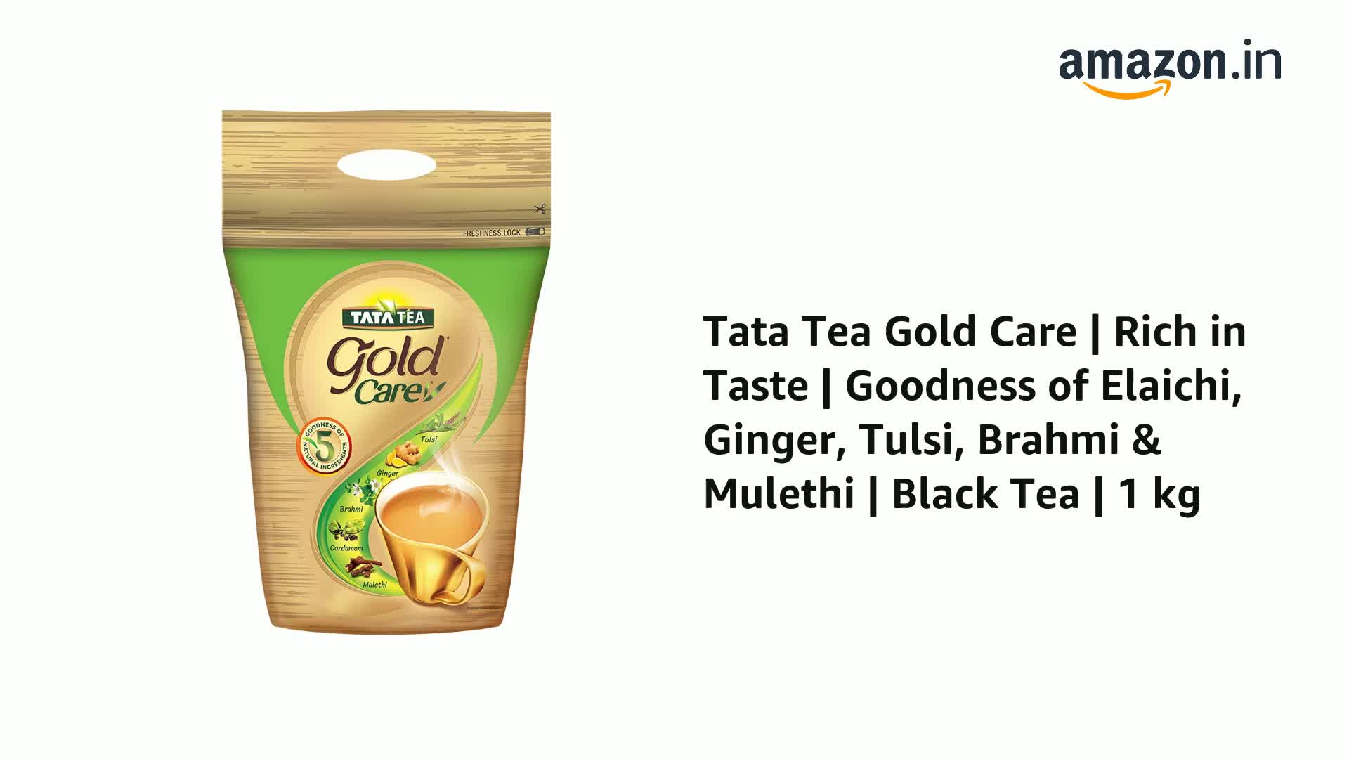 At the heart of Tata Tea Gold Care is our commitment to offer you an exquisite tea blend that combines the rich taste of the fine valley-grown teas with the goodness of five natural ingredients. The tea has ingredients like tulsi that is known to improve the bodys immunity ginger known to be good for the common cold and cough Brahmi known to help improve memory cardamom known to help with digestion and mulethi is known to be good for sore throat. With a taste so irresistible this tea will leave you longing for more. Tata Tea Gold Care- Enjoy goodness in every cup!