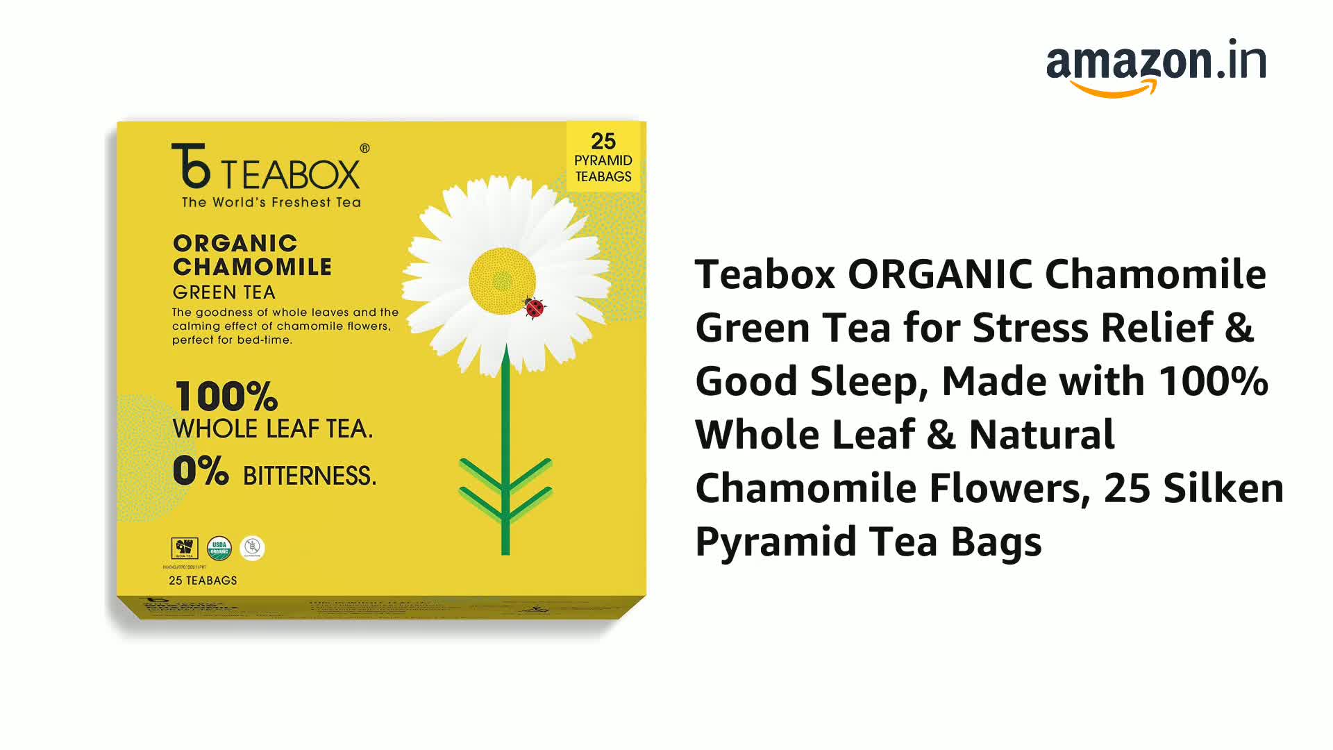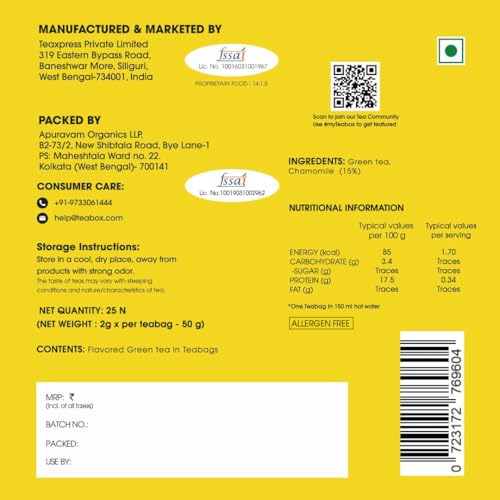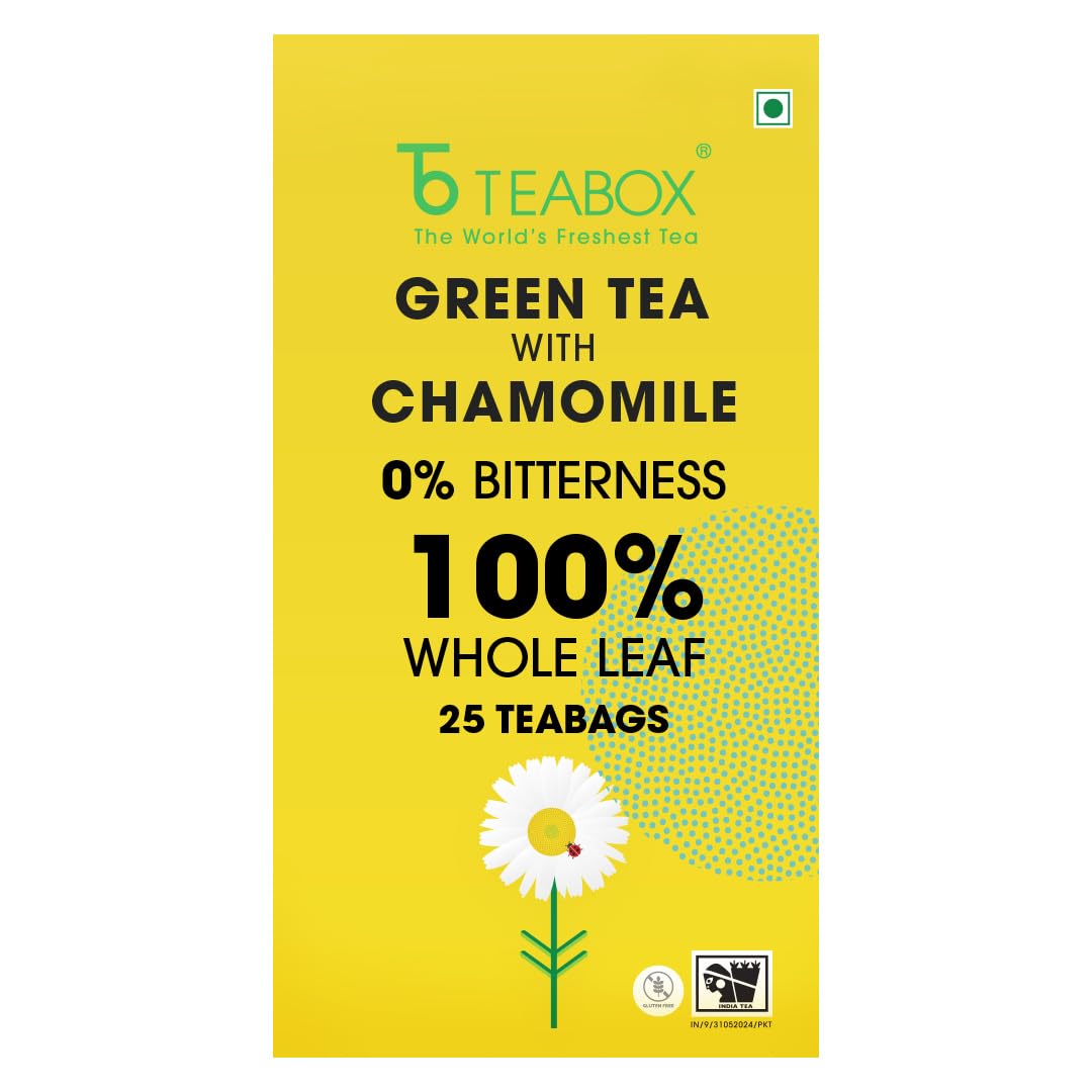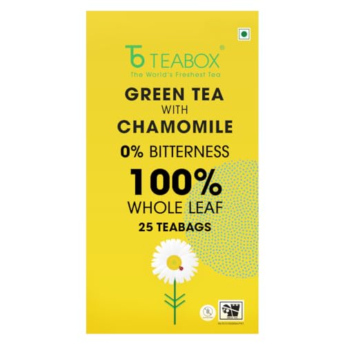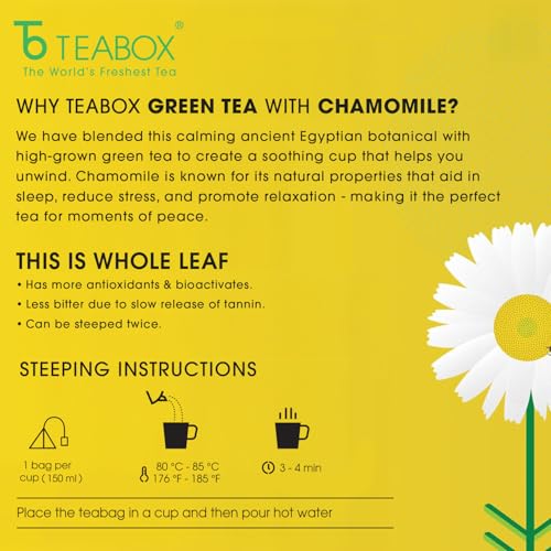 HomeGroceryBeveragesTeaTeabox Premium Chamomile Green Tea With Real Flowers | 100% Whole Leaf Green Tea From The Himalayas | 25 Tea Bags (Low Caffeine)
