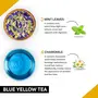 Teacurry Blue Yellow Tea Blend is a calming herbal infusion made from marigold blue pea flower mint leaves and chamomile. It offers a soothing experience with floral flavors vibrant colors and wellness benefits. The marigold adds sweetness blue pea flower provides a striking hue mint offers refreshment and chamomile promotes relaxation.