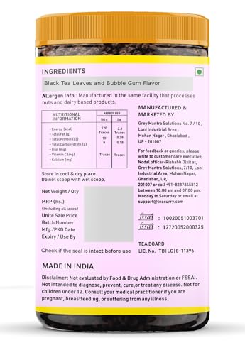 TEACURRY Bubble Gum Chai (100 Grams 50 Cups) - Bubble Gum Chai for Energy and Immunity - 100% Natural Flavoured Tea | Refreshing & Tasteful Bubble Gum Flavor Chai Tea