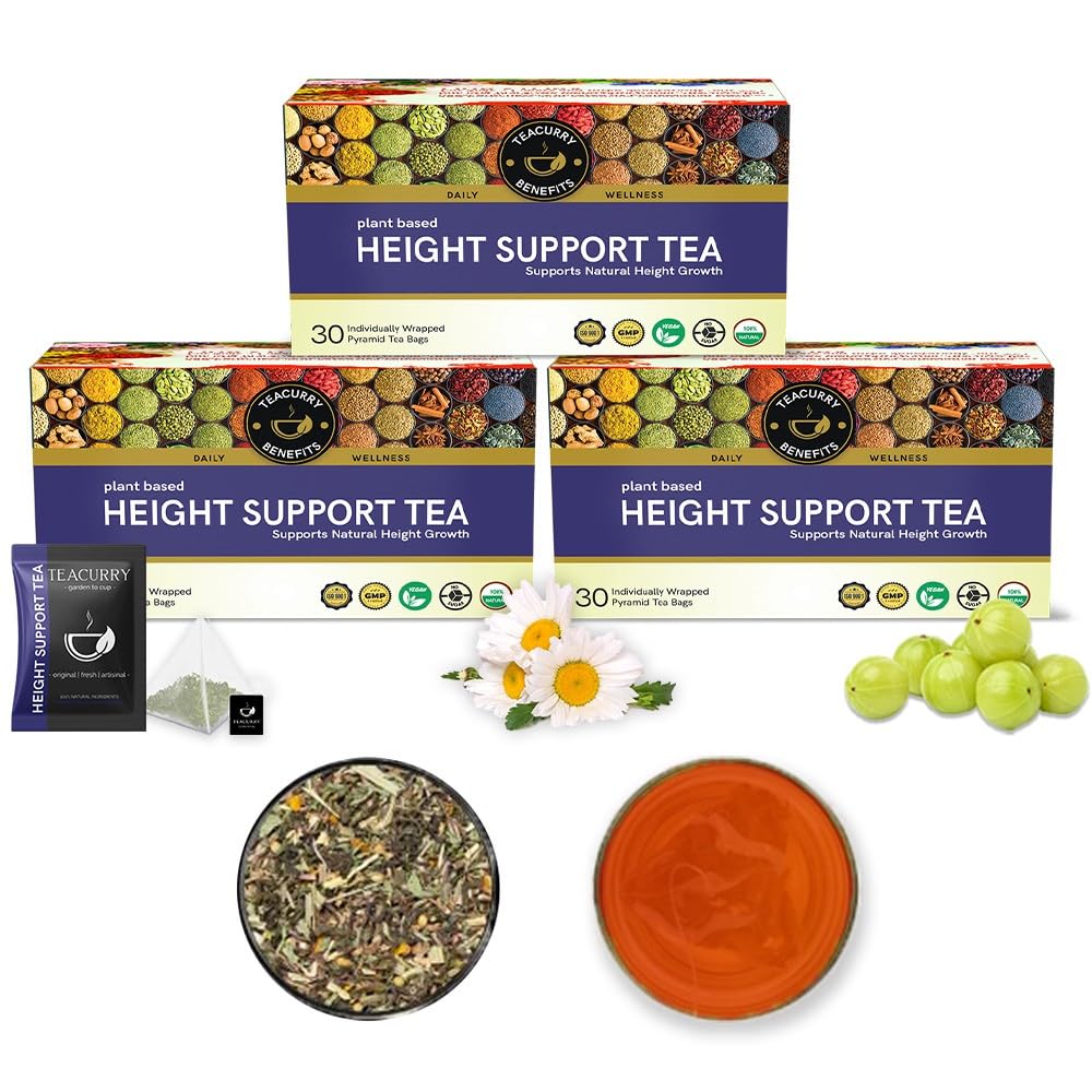 Manage Height - Teacurry Height Support Tea is suggested to support height in adults by encouraging the release of hormone in adults it helps maintain bone density and strength.