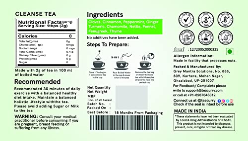 TEACURRY Liver Cleanse Turmeric Tea (30 Teabags)-With Peppermint And Penang Cloves Natural Cleansing Tea50 Grams
