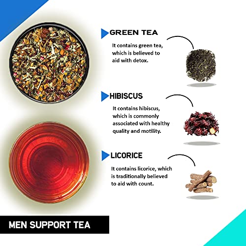 Men Support Tea - It helps with count vitality strength and proper function. It is a rejuvenating herbal blend that promotes vitality and proper function in a mens body. It has a pleasant smooth sweet taste and consists of more than ten herbs.