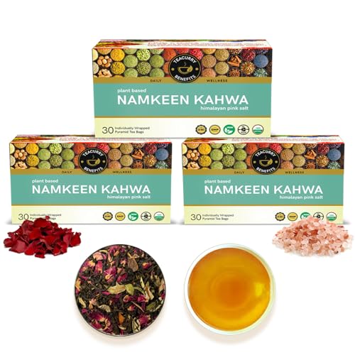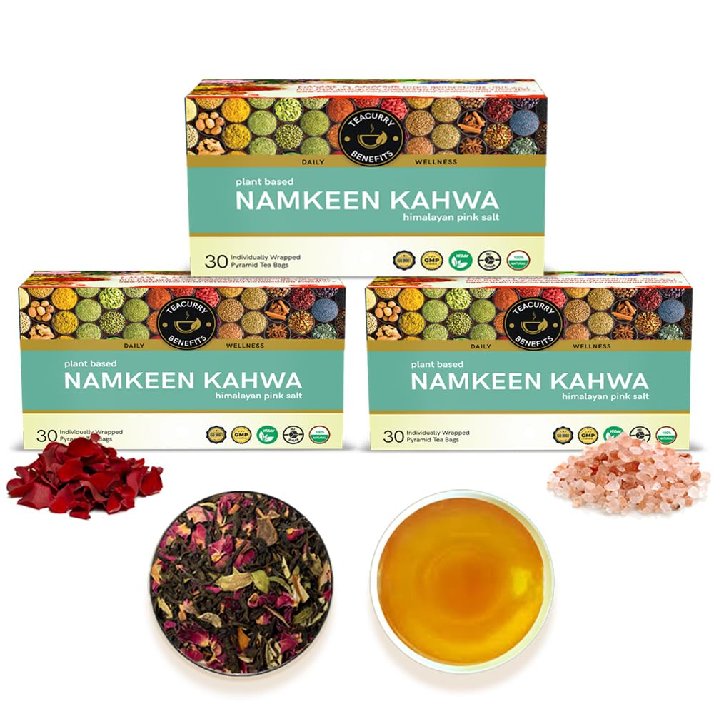 TEACURRY Namkeen Kahwa Kashmiri Himalayan Pink Salt Tea - (90 Tea Bags 3 Month Pack) - Boost Immunity With Minerals | Natural Himalayan Pink Salt