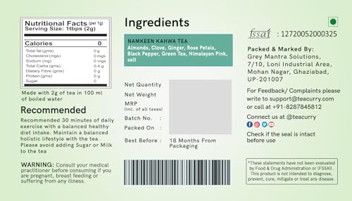 • Distinct Flavor Experience: Teacurry's Namkeen Kawa with Himalayan Pink Salt offers a truly unique flavor journey. The blend of premium Indian tea leaves and Himalayan Pink Salt achieves a delicate balance of savory and sweet creating a delightful tasting