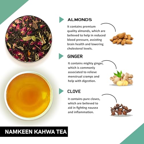 • Relaxation Ritual: Tea has a long history of promoting relaxation and mindfulness. Namkeen Kawa's balanced flavors offer a soothing ritual for unwinding and destressing. Take a moment for yourself and relish the tranquil experience with each sip.