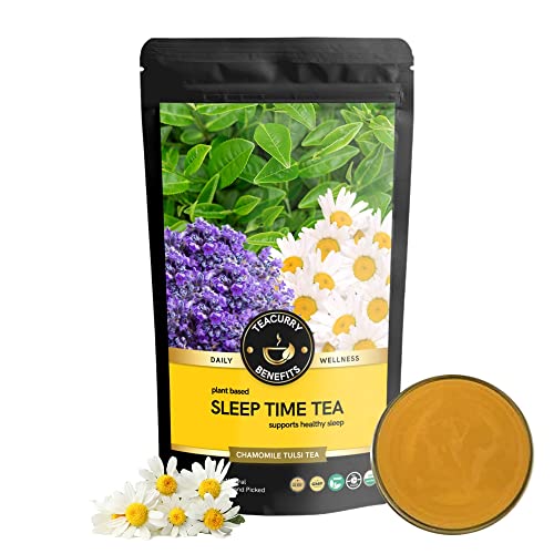 TEACURRY Natural Sleeptime Tea - 50 Grams | 100% Green Tea Lemongrass Chamomile Lavender | Helps Relax Sleep Calms Nerves Beats Insomnia | Relax Tea (50 Grams Loose Tea)