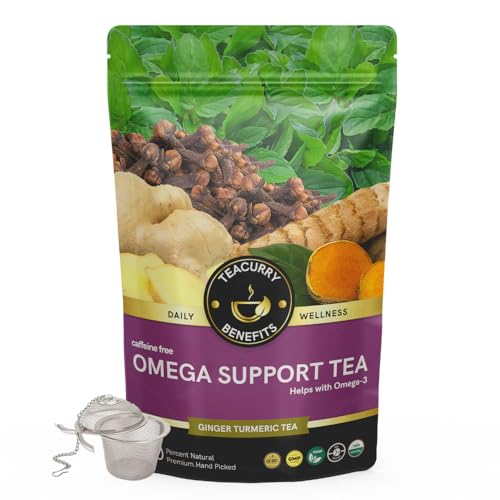 Teacurry Omega Support Tea (1 Month Pack | 100 gram Loose + Infuser) - Powerful Vegan Blend Rich in Omega 3 for Joints Hair Eyes and Brain