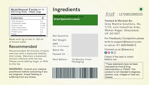• Taste - Teacurry Organic Spearmint Tea offers a delightfully crisp and invigorating taste delivering a refreshing burst of minty goodness with each soothing sip.