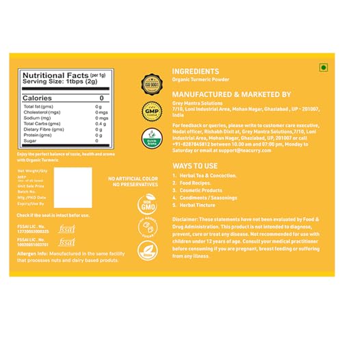 Ingredients - Organic turmeric powder made from pure air-dried turmeric sticks. No additives just nature's golden goodness.