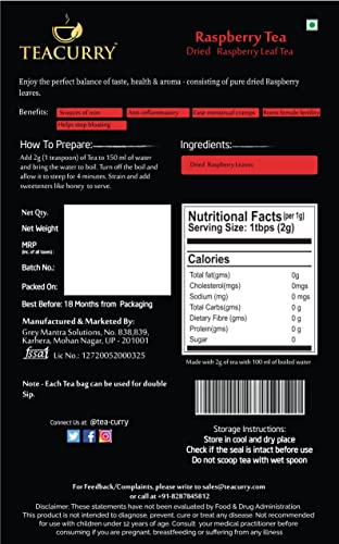 HomeGroceryBeveragesTeaTEACURRY Raspberry Tea (200 Grams 400 Cups)- Helps with Period health Fertility Labour & Child birth - Raspberry From Washington