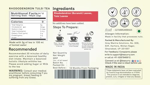 INGRIDIENTS -Teacurry Rhododendron Leaf Tea is crafted from handpicked rhododendron leaves carefully processed to preserve their natural essence resulting in a unique blend that embodies both floral delicacy and earthy richness.