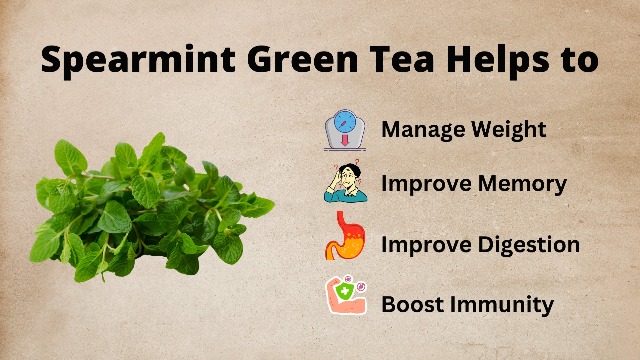 100% Natural Ingredients - A harmonious blend of dried spearmint leaves and green tea meticulously combined to create a flavorful and aromatic infusion.