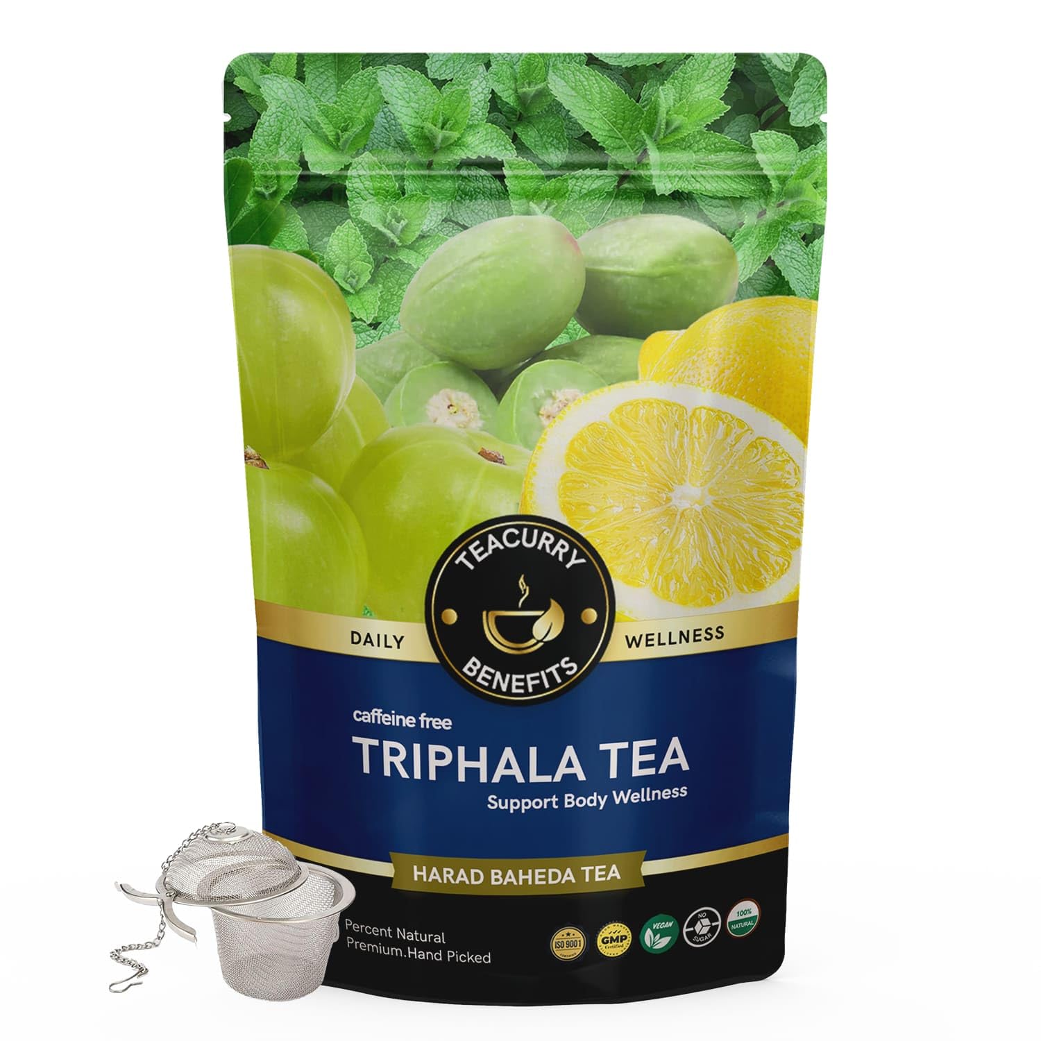 Teacurry Triphala Herbal Tea (1 Month Pack | 100 gram Loose + Infuser) - Helps with Digestive Support and Clear Skin | Power of Triphala for Glowing Skin & Shiny Hair
