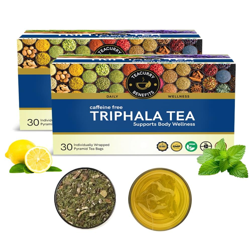 Teacurry Triphala Herbal Tea (2 Month Pack | 60 Tea Bags) - Helps with Digestive Support and Clear Skin | Power of Triphala for Glowing Skin & Shiny Hair